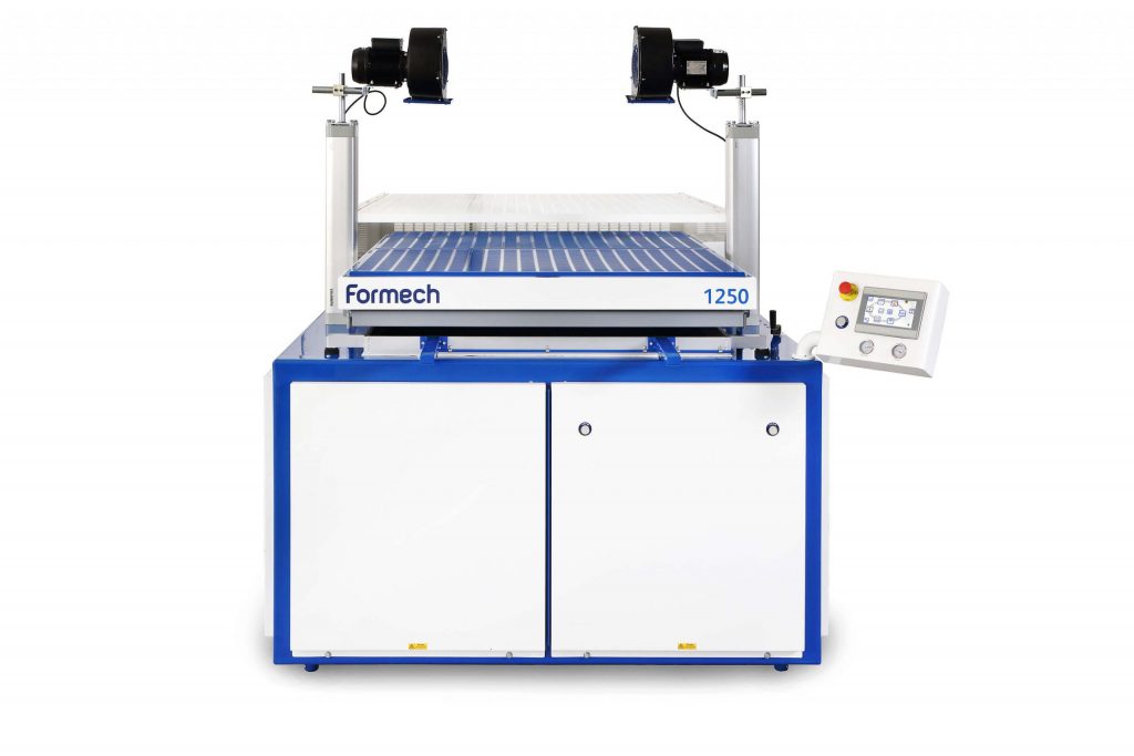 The Formech 1250 is a vacuum forming machine particularly suited for R&D in the automotive and aerospace industries, sign and display applications, point-of-sale, film and theater set design, and large-format production.
